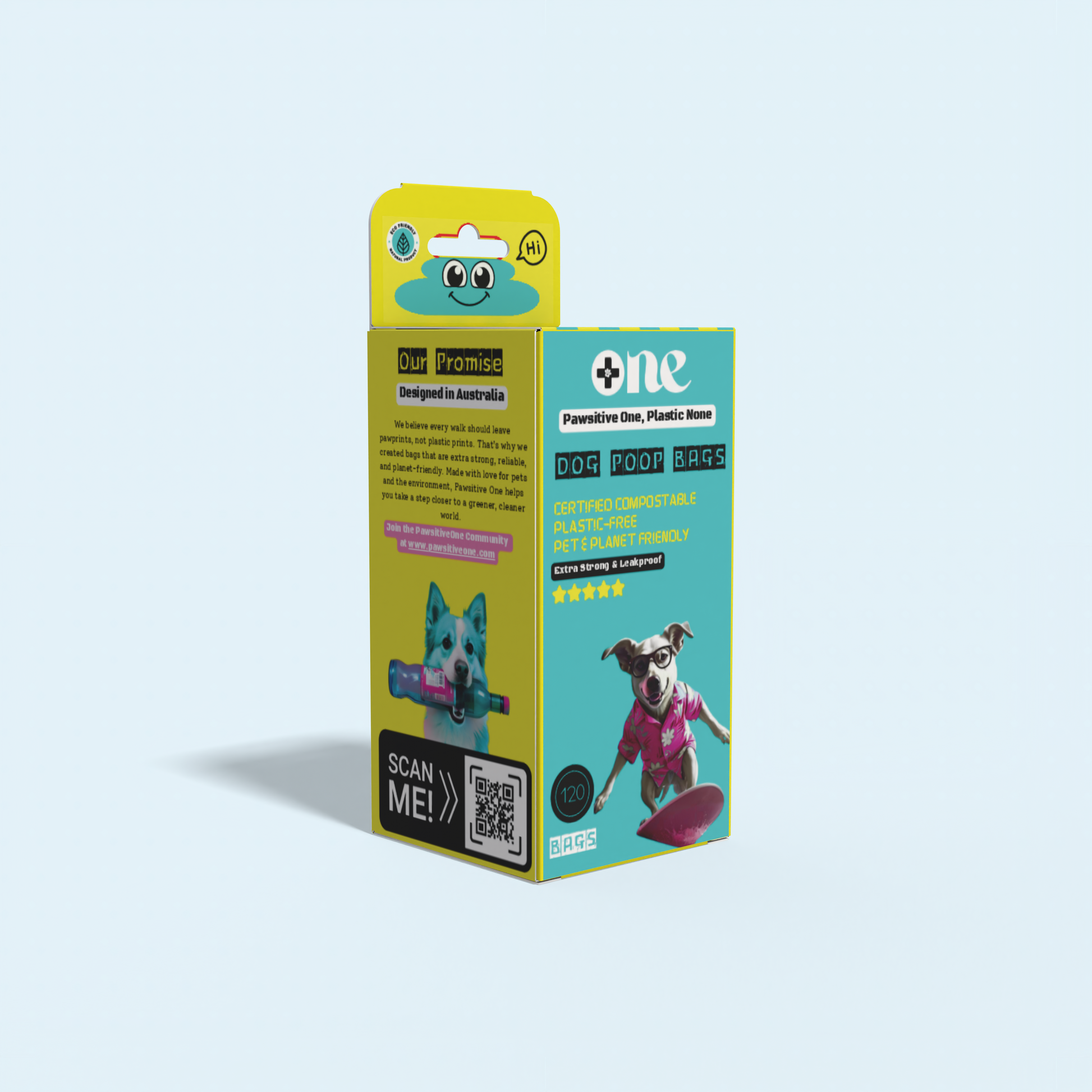 Make every walk count with Pawsitive One Compostable Dog Poop Bags — Australia’s eco-friendly choice for pet parents who care about their dogs and the planet. Unlike cheap plastic bags that pollute for centuries, our bags are made from a sustainable blend of PBAT, PLA, and corn starch, certified compostable and designed to break down naturally into water, CO₂, and organic matter.